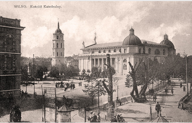 Plac Katedralny w Wilnie z katedrą św. Stanisława Biskupa i św. Władysława na karcie pocztowej,