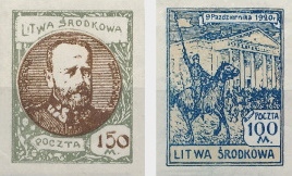 Znaczki pocztowe Litwy Środkowej wydane w 1. rocznicę wyzwolenia Wilna przez gen. Lucjana Żeligowskiego,