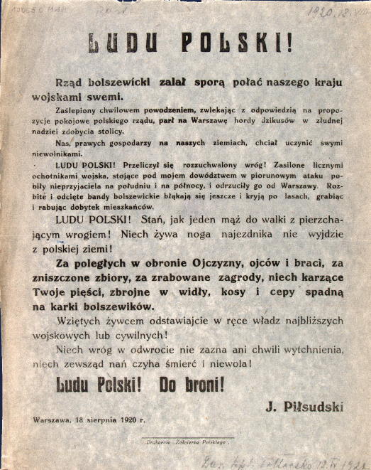 Odezwa naczelnika państwa Józefa Piłsudskiego, Warszawa, 18 sierpnia 1920 r.
