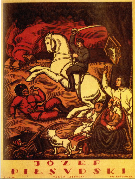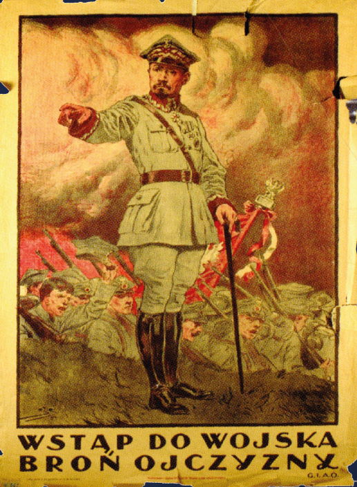 Polski plakat propagandowy Józef Piłsudski, proj. Władysław Skoczylas (drzeworyt), wydany przez Generalny Inspektorat Armii Ochotniczej, Warszawa, 1920 r.