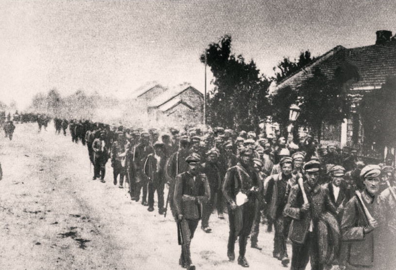 Kolumna jeńców z Armii Czerwonej prowadzona przez Radzymin, sierpień 1920 r. Narodowe Archiwum Cyfrowe (Warszawa)